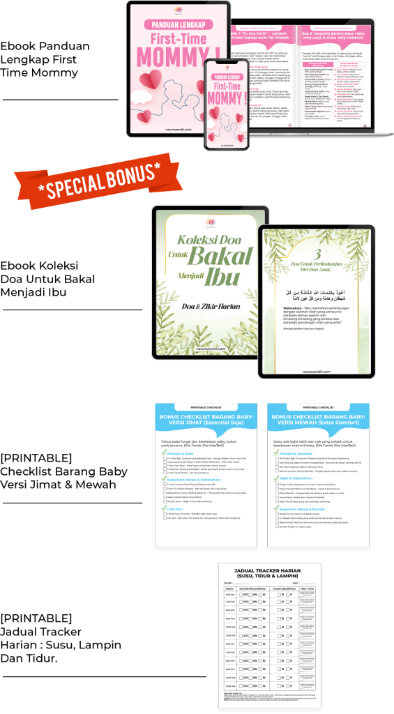 Selain eBook lengkap, saya nak berikan beberapa bonus eksklusif yang saya buat khas untuk bakal mama macam anda.
